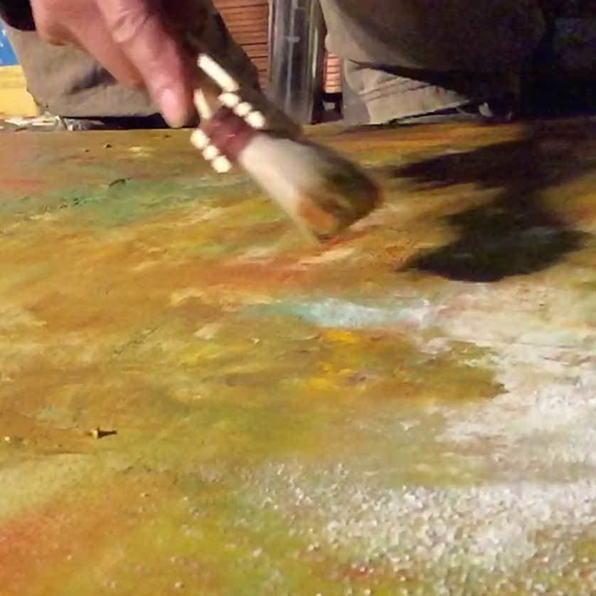 マチエールの作り方、そのための顔料・溶剤の使用方法など、現代美術的なタブロー・ドローイングを制作する過程を教えます。